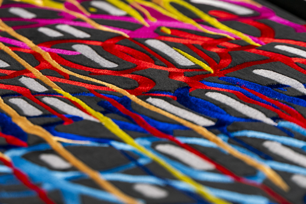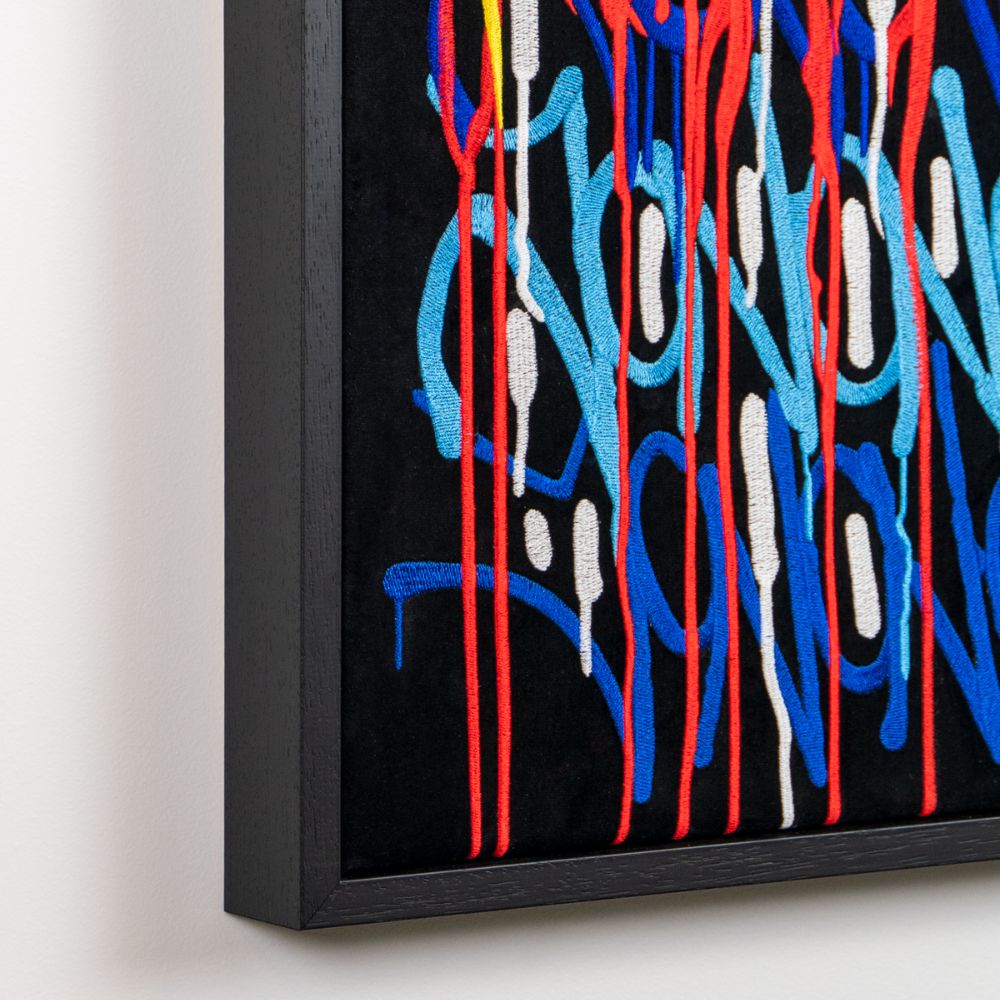VANGART reinvents contemporary embroidery by working with leading artists to create unique textile artworks. Each piece is produced in our Lyon atelier, labeled EPV (Entreprise du Patrimoine Vivant, a mark of exceptional French craftsmanship), where original artworks are transformed into millions of stitches on premium fabrics. Each edition is numbered, signed, and museum-framed.