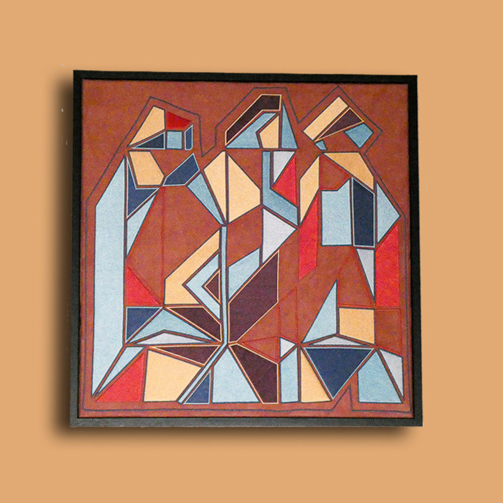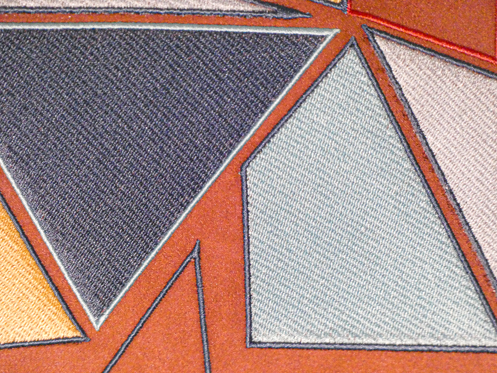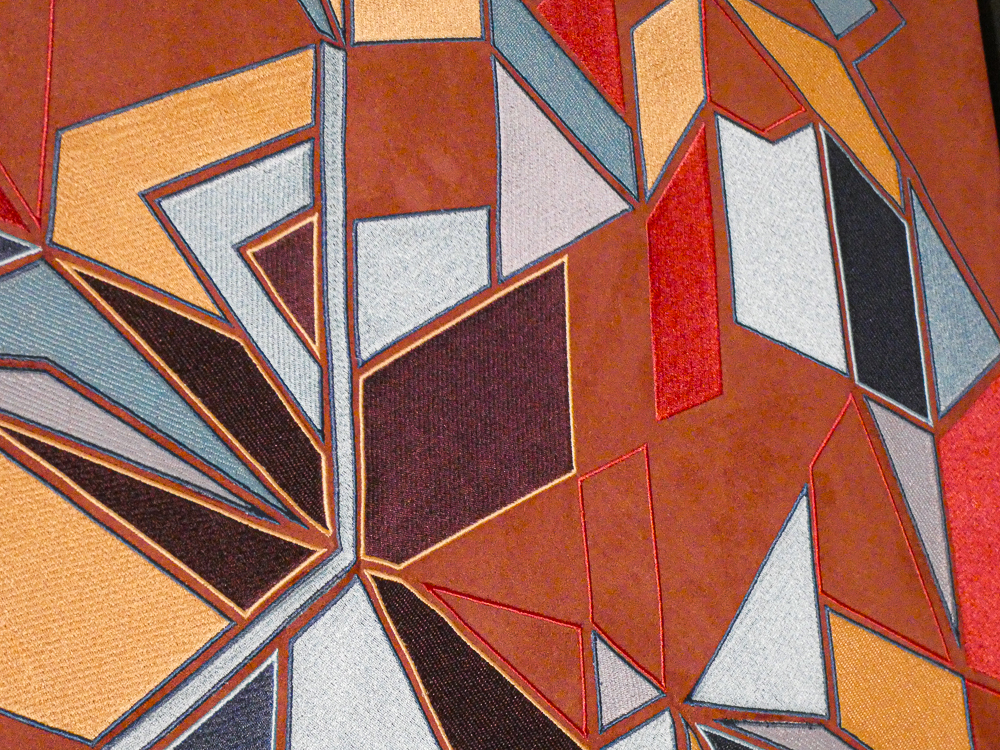 Broderie VANGART 6 couleur, 434 378 points de broderie, sur un velours couleur saumon.