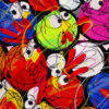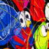Son œuvre distinctive se concentre sur les “Chicanos”, des petites poules rebondissantes aux couleurs et formes variées. Ces créations ludiques servent de parodie, reflétant avec humour notre existence humaine dans ce monde moderne et surpeuplé. À travers ses fresques, CEET capture l’essence de la vie contemporaine, mettant en scène ces personnages cocasses pour exprimer une satire subtile de notre société.
