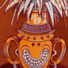 Œuvre brodée de quinze couleurs sur tissu couleur corail. 228 489 points de broderie.